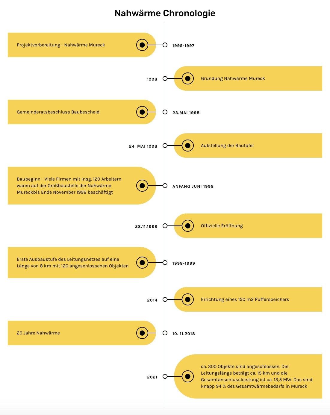 Mit den einstimmigen Beschlüssen des Gemeinderates fiel am 26.Mai 1998 der Startschuß für den Baubeginn der Nahwärme Mureck. Damit war die letzte Voraussetzung für die Errichtung dieses großen Projektes gegeben.